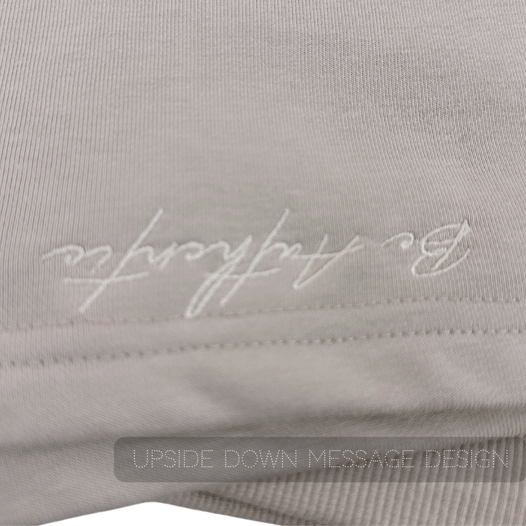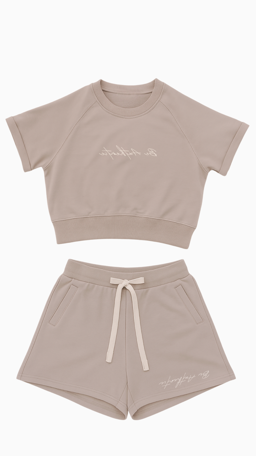 The material is very high quality and the design itself is super flattering on the body. I really like the way the sleeves holds its structure. The embroidery on the set is not super obvious which gives a nice personal touch. Such a great idea to write the text backwards to that we get affirmations every time we look into the mirror 🥹 Will be wearing this every day!!
