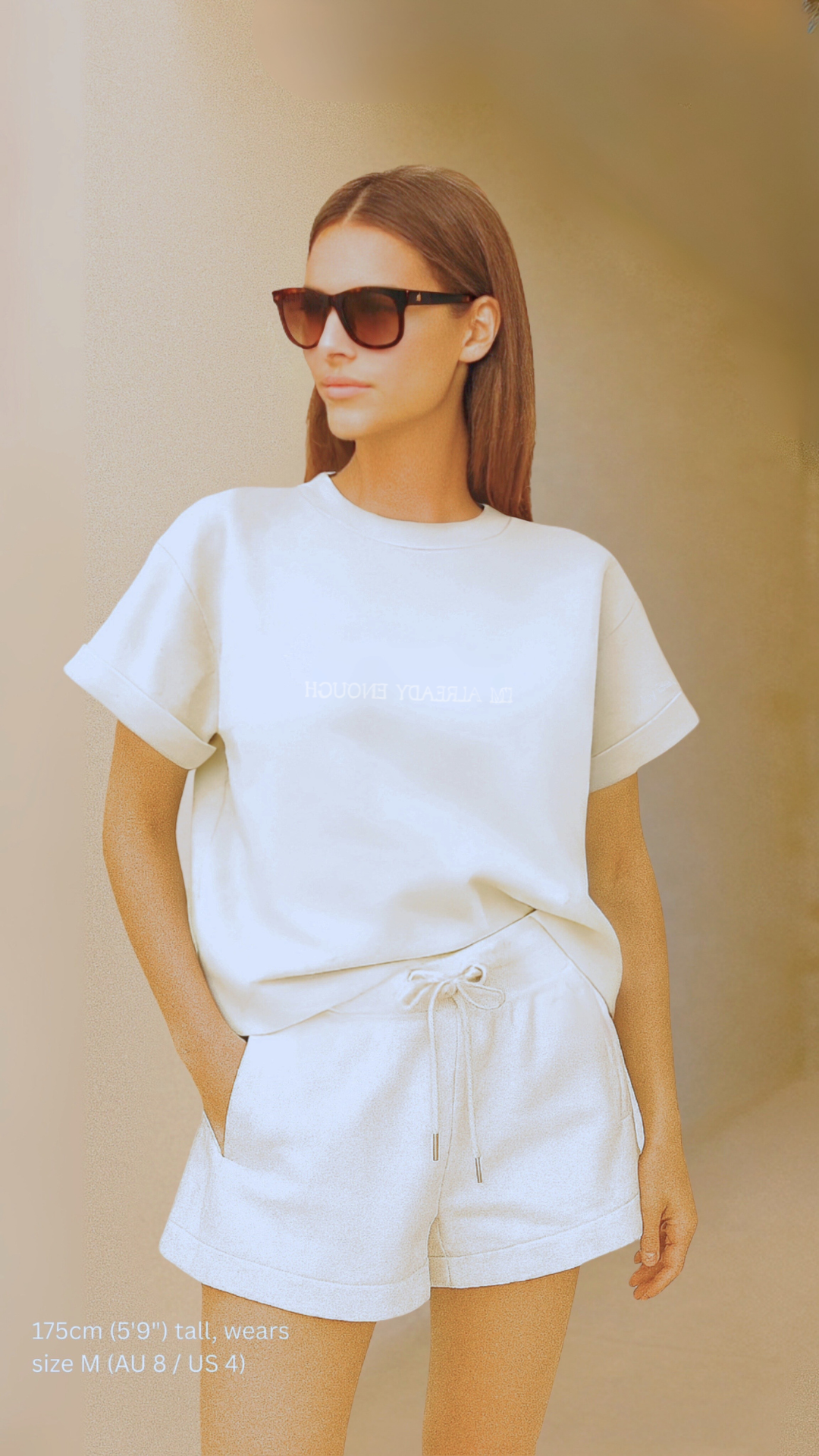 • Soft-touch French terry, structured yet breathable — perfect for spring days and slow mornings.
