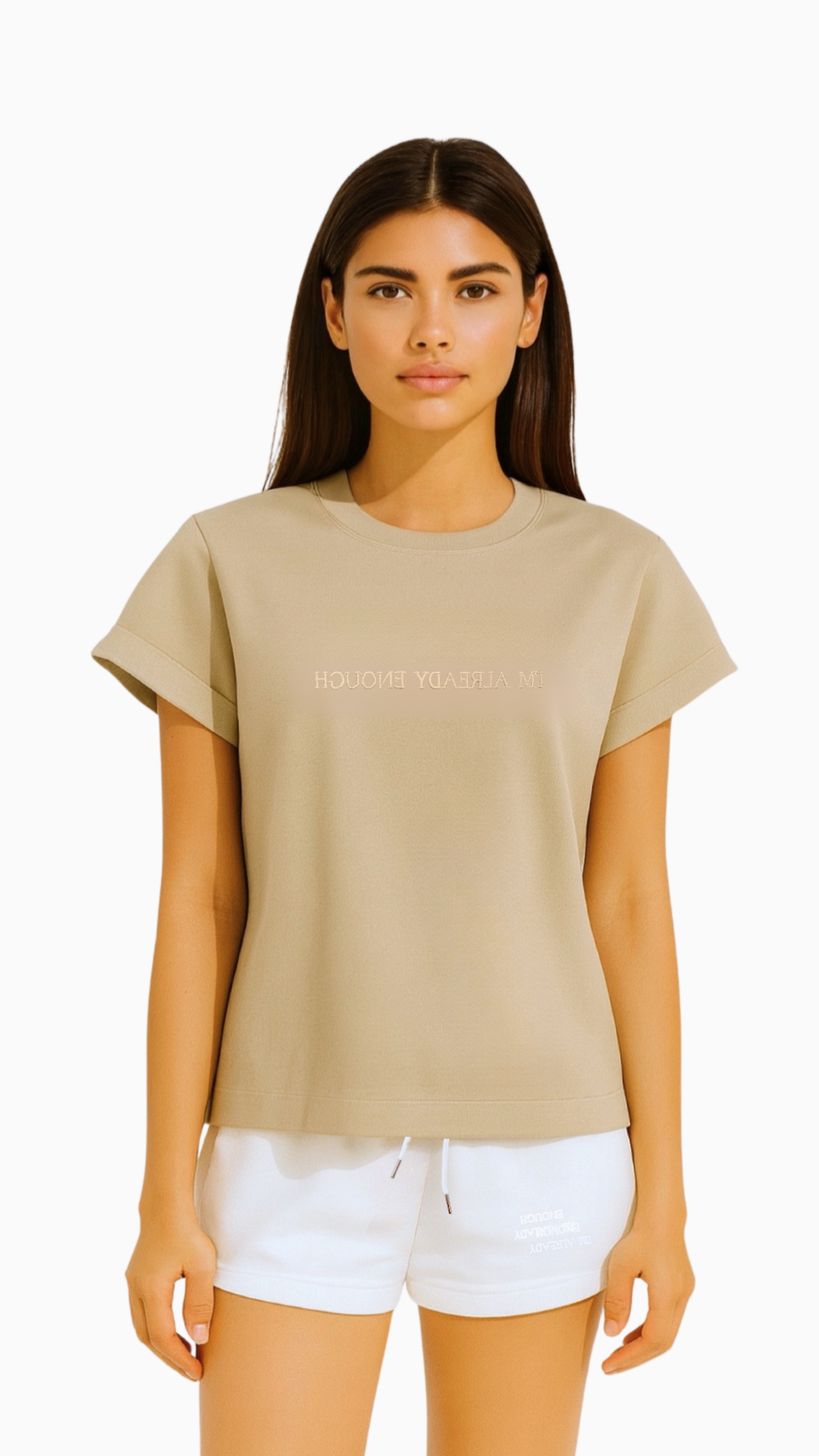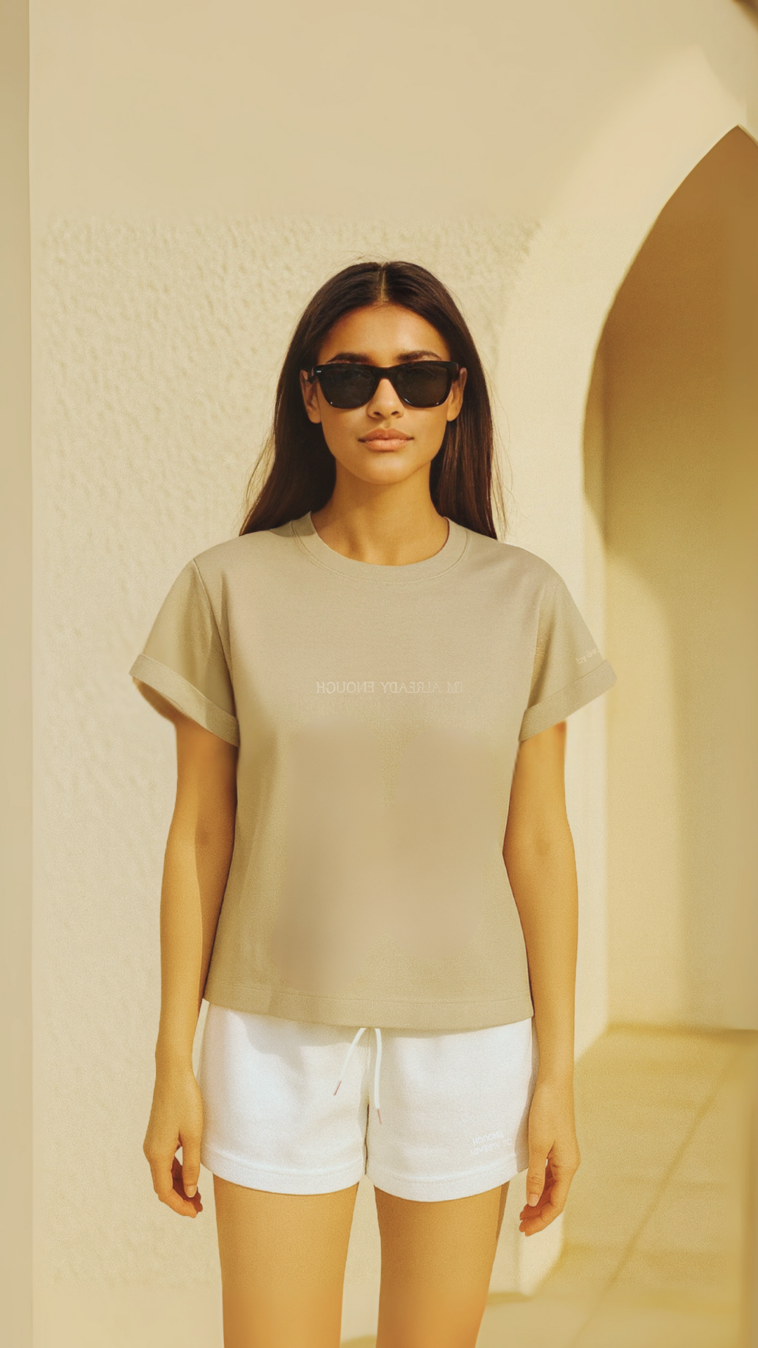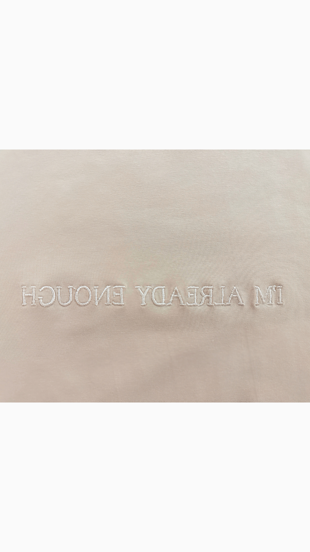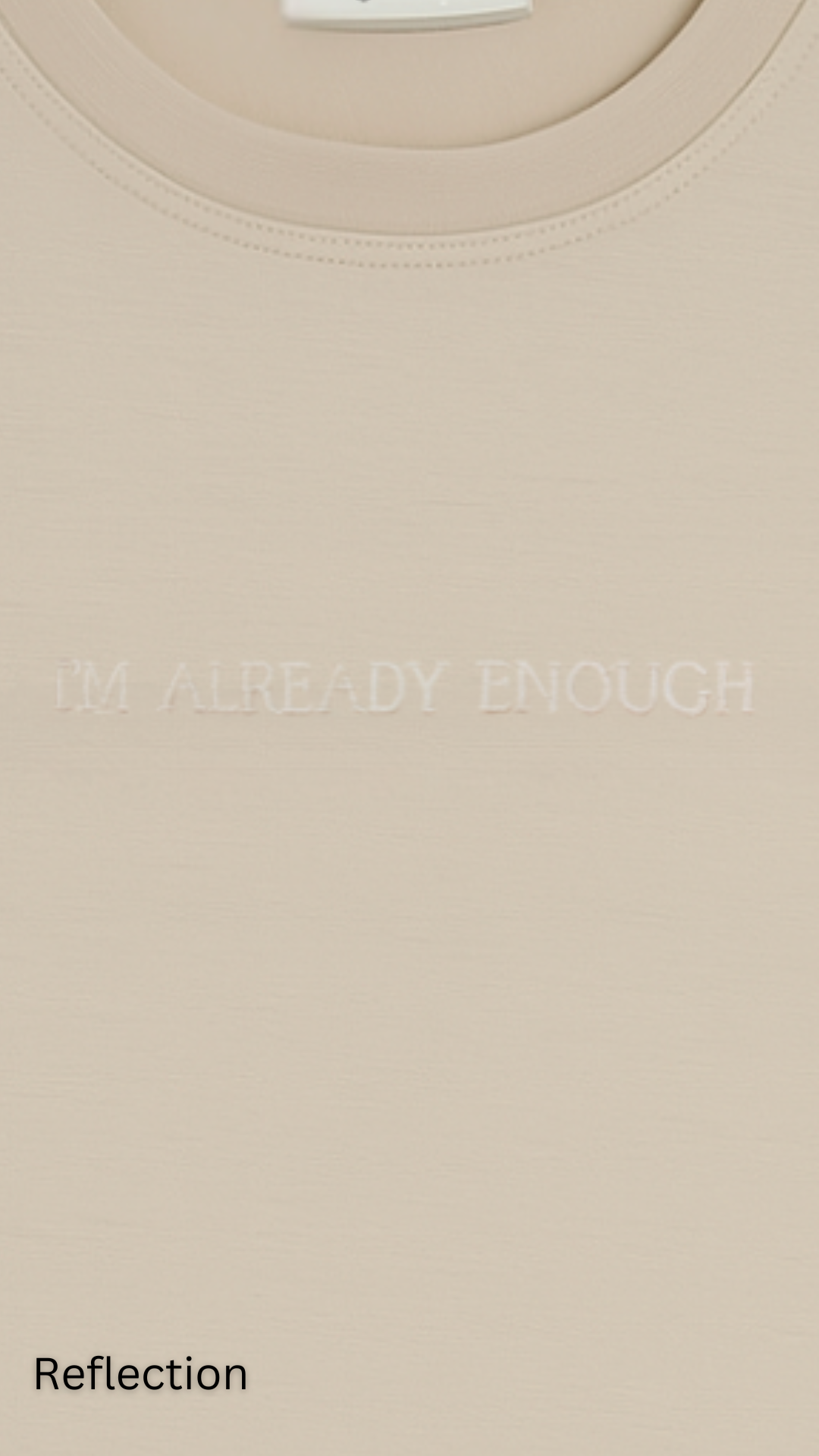 Crafted from high-density, sculpted fabric. Each time you look in the mirror, a quiet message is revealed: “I'm already enough.”