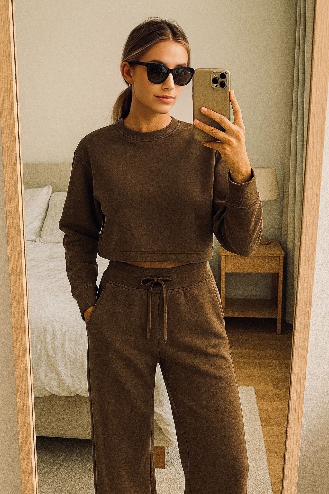 I got it with the top as well! Was surprise with the quality when I receive it! The fabric is soft and feels amazing on the skin, and the color is so flattering in person. Comfortable enough for relaxing at home but stylish enough to wear out!